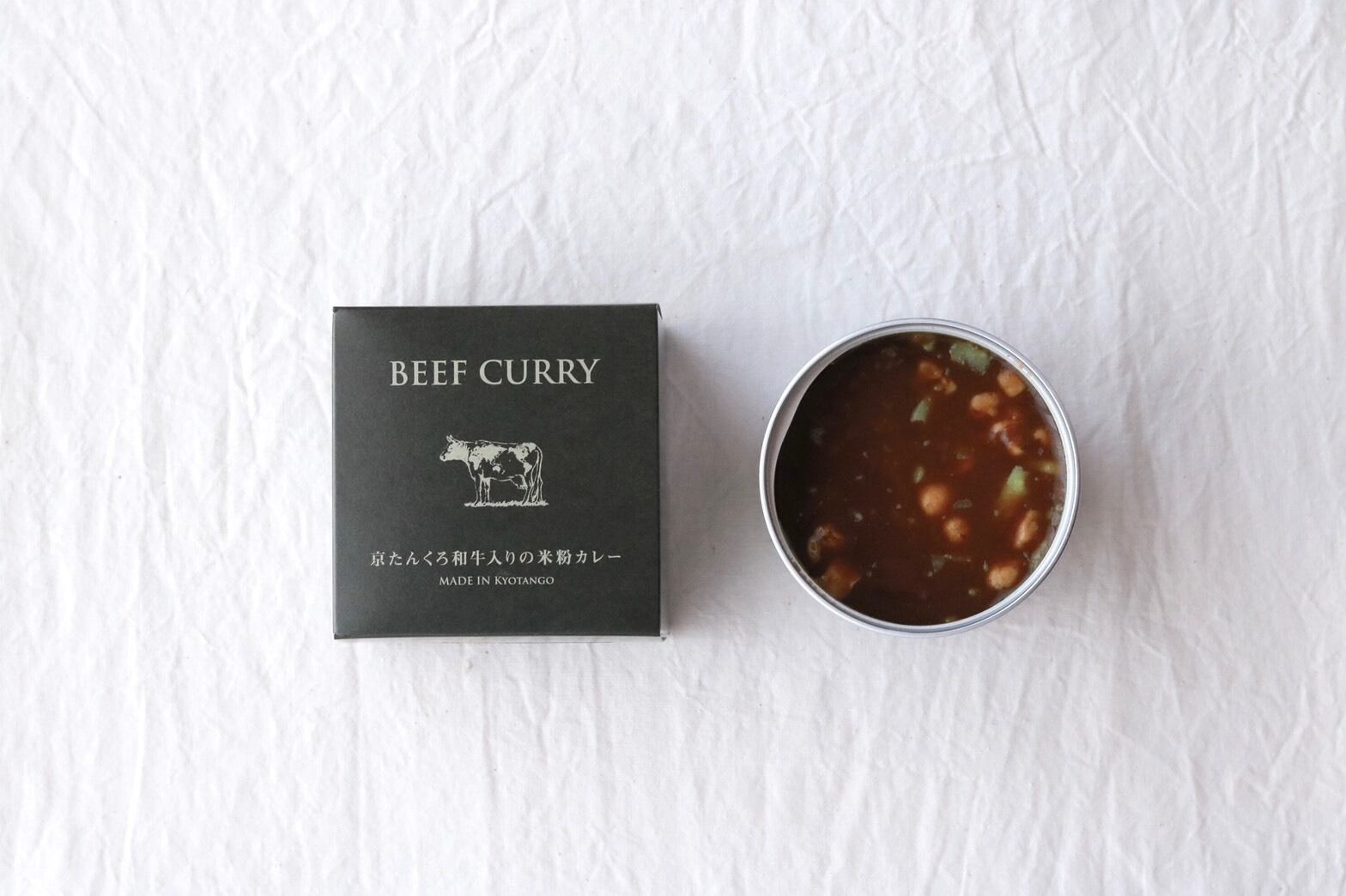 海が見える牧場、日本海牧場さんのこだわりが詰まった缶詰です。京丹後産のコシヒカリの米粉からカレールーを作り、日本海牧場で飼育している牛だけを使って煮込んだ牛骨スープをベースに、京たんくろ和牛の肉等を加えて煮込んだカレーです。