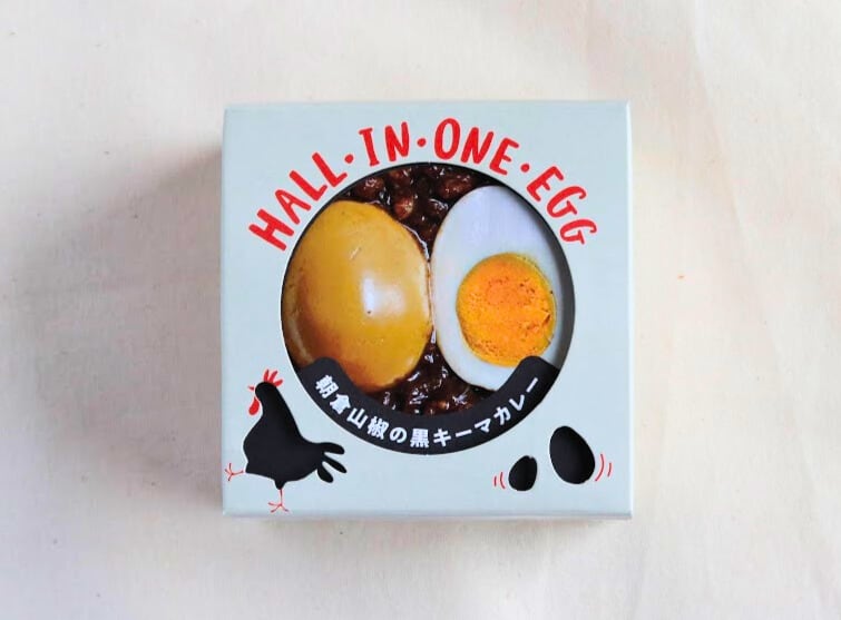 赤ちゃんたまご(初たまご)と親鶏のミンチに、養父市特産の朝倉山椒と23種類のスパイスを合わせたカレーです。
